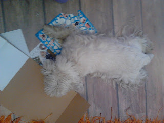 Ptysiu w jesiennych liściach :) Do twarzy mu w nich (tak jakw śniegu).